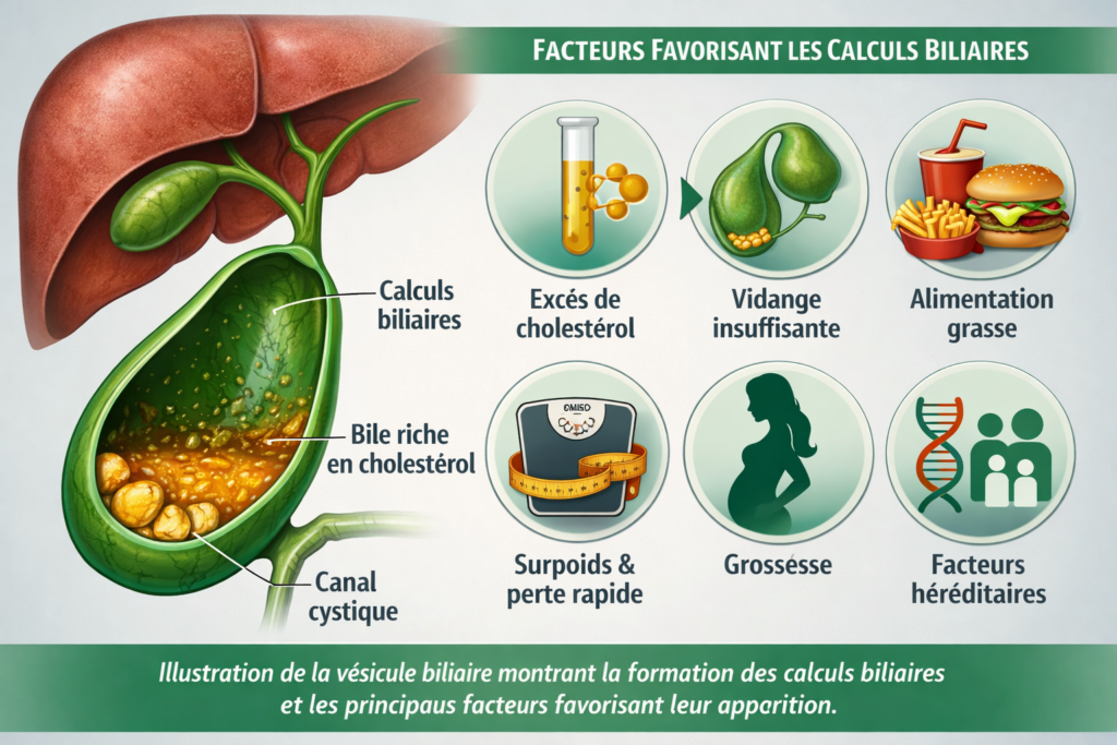 De nombreuses personnes sont porteuses de calculs biliaires sans le savoir, jusqu’au jour où l’équilibre se rompt. Alimentation déséquilibrée, surpoids, stress, troubles métaboliques ou facteurs hormonaux peuvent favoriser leur apparition. Lorsqu’ils deviennent symptomatiques, les calculs biliaires ne doivent pas être ignorés, car ils peuvent entraîner des complications sérieuses s’ils ne sont pas pris en charge à temps.
