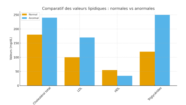 Graphe comparatif des valeurs lipidiques normales vs anormales: Dyslipidémie : facteur favorisant